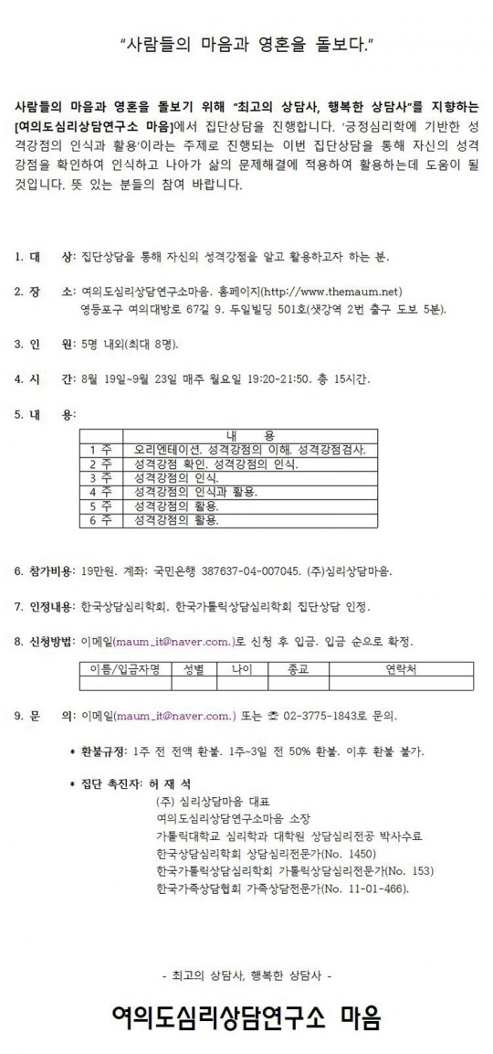 [집단상담] 긍정심리학에 기반한 성격강점의 인식과 활용 집단상담.