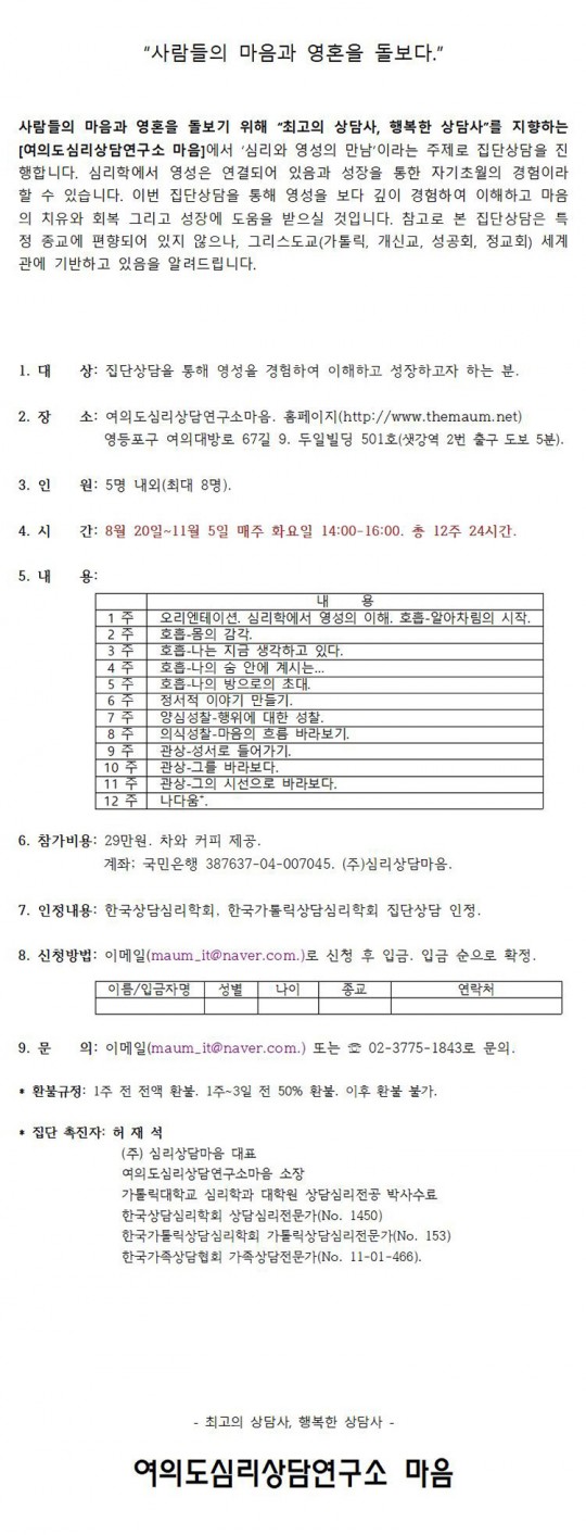 [집단상담] 심리와 영성의 만남