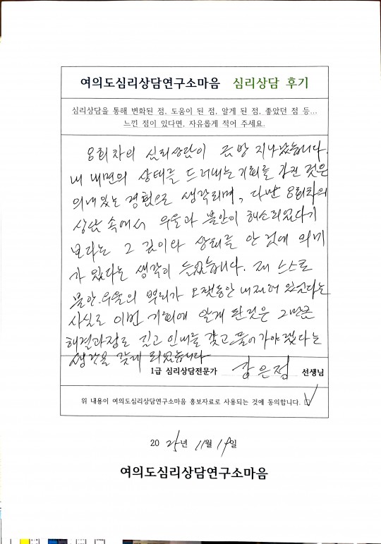강은정 심리상담전문가 상담 후기 입니다.