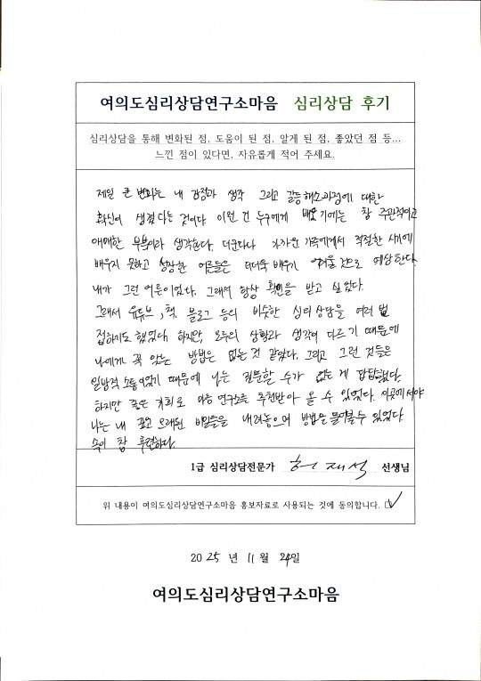 허재석 심리상담전문가 상담 후기입니다.