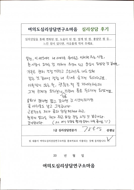 강은영 심리상담전문가 상담 후기입니다.
