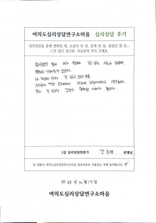 강은영 심리상담전문가 상담후기 입니다.